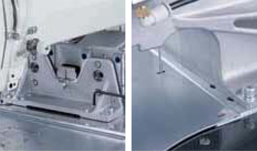 僅需擰松2根螺栓或4根螺栓便可實現壓腳的改換,將針板瞄準送布板的基準孔便可簡略實現送布板的改換。